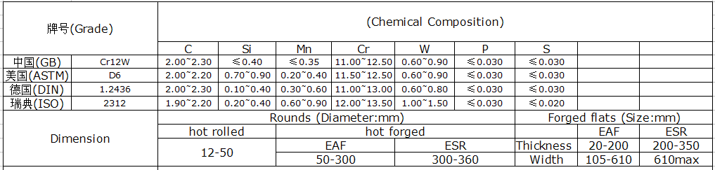 very good wear resistance, high compressive strength, is extremely low quench-hardening ability and high tempering ability.